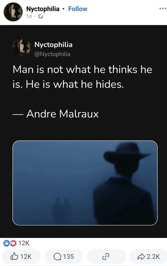 “Man is not what he thinks he is, he is what he hides.”